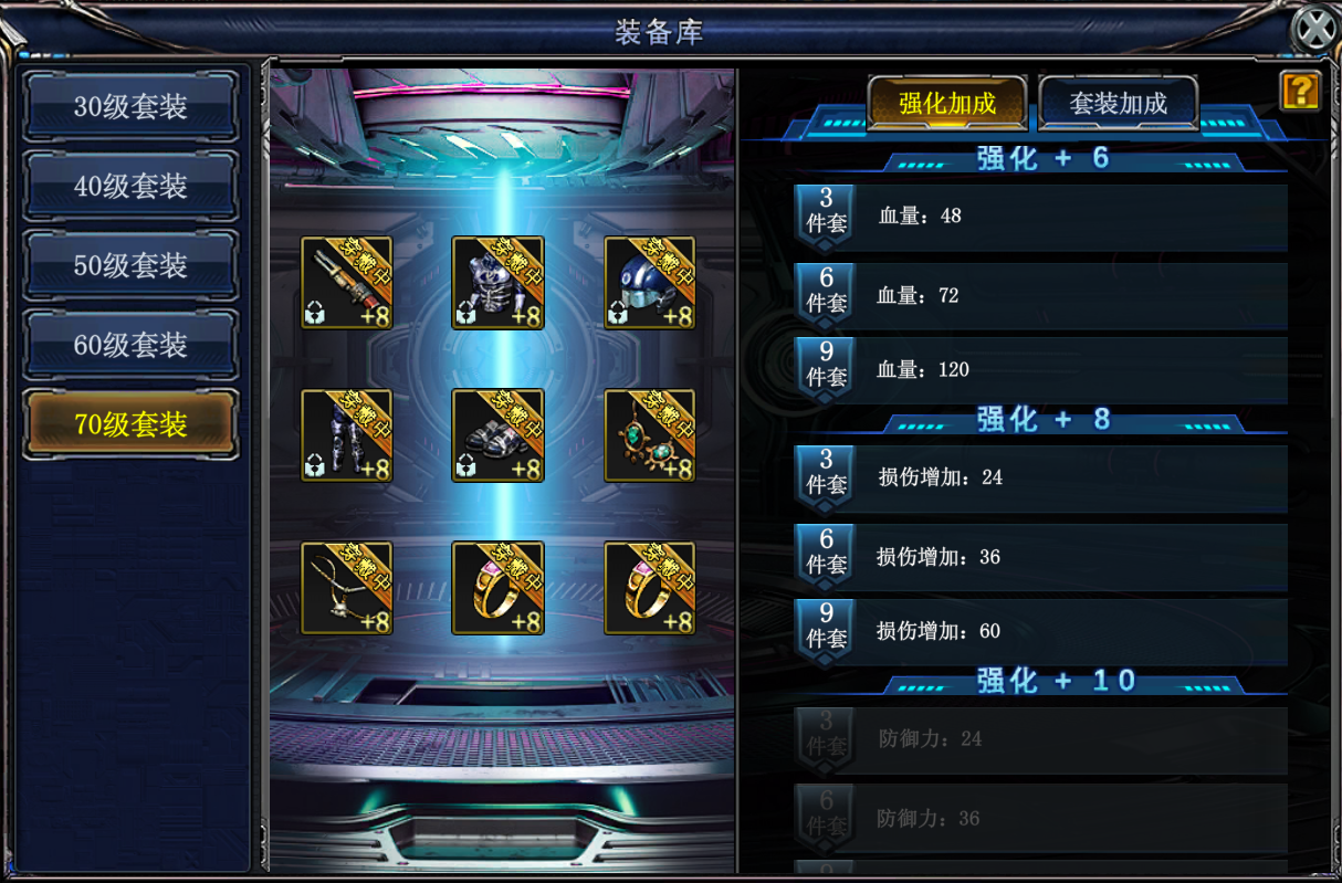 35级开放。将合适的装备放入装备库,即使不穿戴也能激活额外的套装属性,提供可观的战力加成。