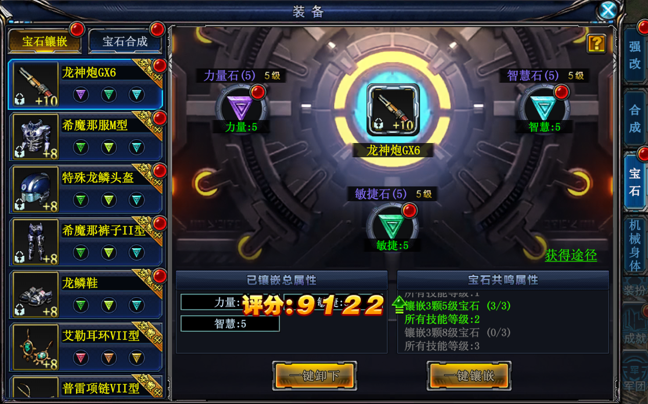 为装备镶嵌宝石能带来大幅度的战力提升。宝石主要通过野外掉落和“虚拟空间”活动固定获取。