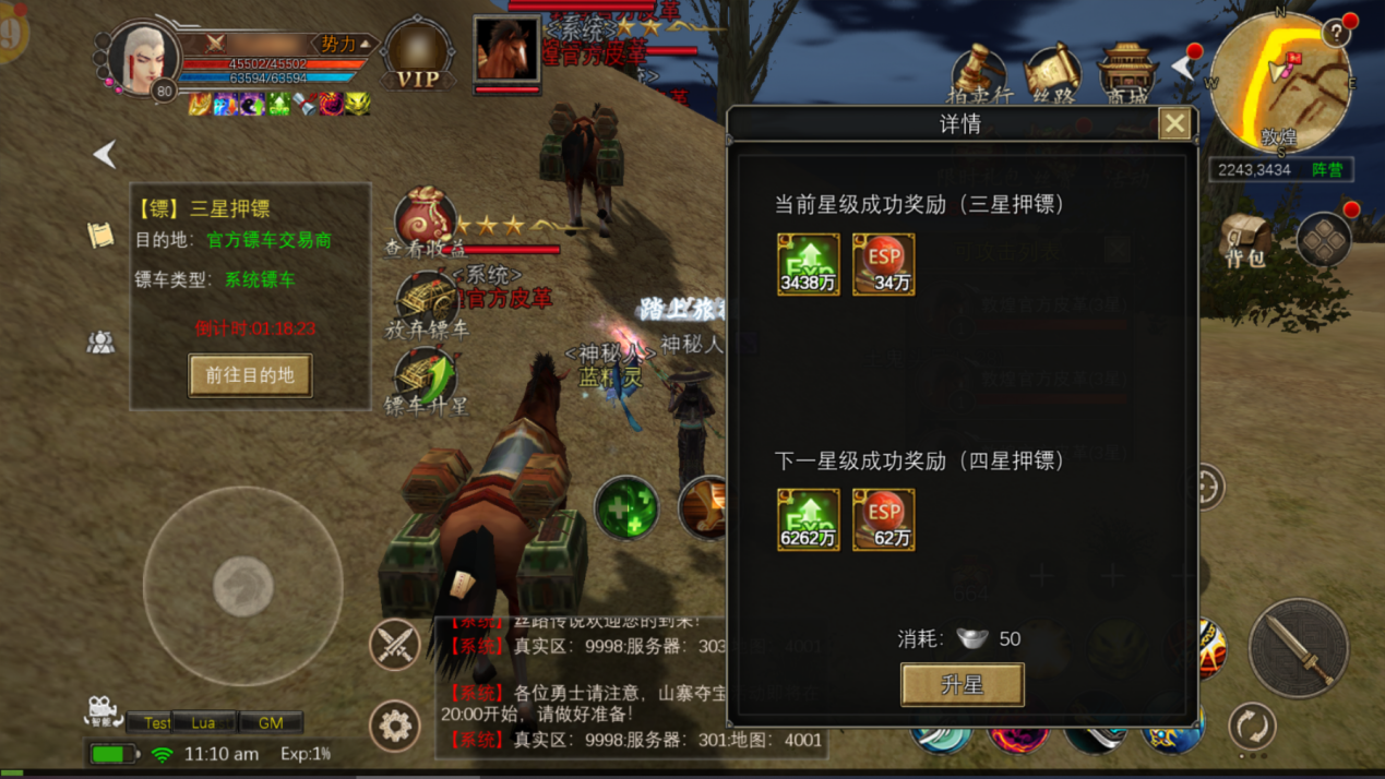 角色等级41~50级可攻击:角色等级30级以上的镖车