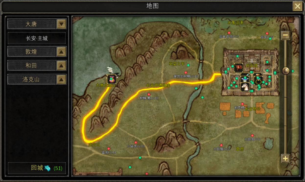 盗贼:这是由江湖游侠、反抗朝廷的义士与无主之民组成的神秘组织,游走在大唐的边缘,他们信奉自由与正义,反对权贵垄断财富。靠抢劫镖师运送的货物,贩卖赃物来获取利益。盗贼需要具备敏捷的身手和巧妙的策略,找准时机对镖师发起攻击,成功劫货后可将其变卖为金币等资源。